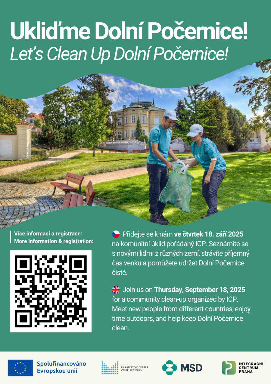 Ukliďme Dolní Počernice !Kdy: 18.9.2025 10:00 - 12:00Kde: Zámecký park Dolní PočernicePořadatel: Integrační centrum Praha« Zpět na výpisSdílet článek Facebook Twitter Linkedin Send by e-mail Print page